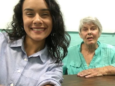 Iris Contreras, IU student from Hammond, and Helen Boothe, bridge