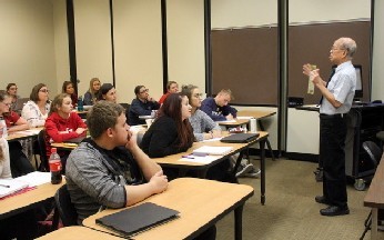 Joe Chin presents a bridge lesson to an oral history class at IU Northwest.