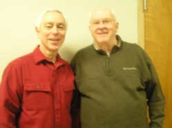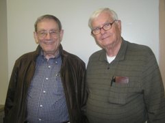 Lee Hastings and Dennis Spencer (left) had a great day on Friday. They posted a whopping 73.51% game in the single-session Friday Open Pairs. Spencer and Hastings then teamed with Marvin King and Judy Putzel to win the Friday-evening Swiss team.