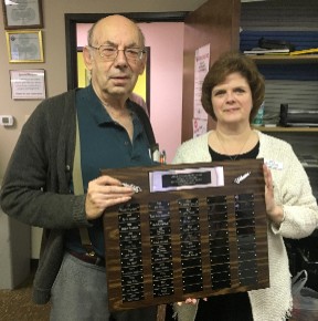 This year’s recipient is Richard ‘Dick’ Petersen. For many years Dick has been the ‘fix-it’ man of the FWDBC. Whether it is a balky furnace in January, a burned out light bulb in the playing area, or a broken piece of furniture, Dick fixes it. Most importantly, when there is a computer glitch or malfunction, Dick Petersen is the person the other directors turn to for advice and/or to correct the problem. Dick does all this in a low-key manner without seeking any recognition or acknowledgement.
