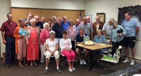 Thank you for the opportunity to tell you a little bit about the Highland Bridge Club. This is a photo from a few years ago when we did some celebrating with our Monday night bridge group.
