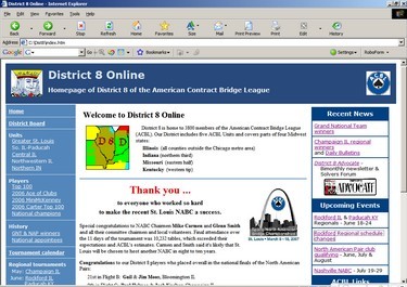 In addition to news about District 8 and its players, the site offers a wide variety of information designed to help our members take advantage of opportunities to learn, play and enjoy the game of bridge. The site features include: