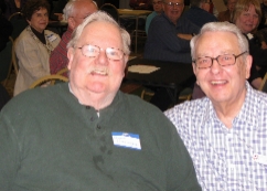 Good Will AwardKarl Dencker (right) congratulated Roger Dieringer for earning the District 8 Good Will Award. The award was presented at the April annual meeting in Elgin.