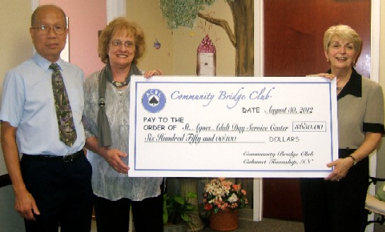 CHARITABLE DONATIONSt. Agnes Adult Day Service Center in Valparaiso, IN was the local charity to which the Community Bridge Club of Gary allocated its member donations for the past year. It is the primary goal at St. Agnes to keep their participants (mostly with Alzheimer’s disease) functioning at their highest potential for as long as possible and to give their caretakers the best information and respite that can be given. The participants are provided each day with structured activities, nurturing relationships, and professional care for the body, mind and spirit.