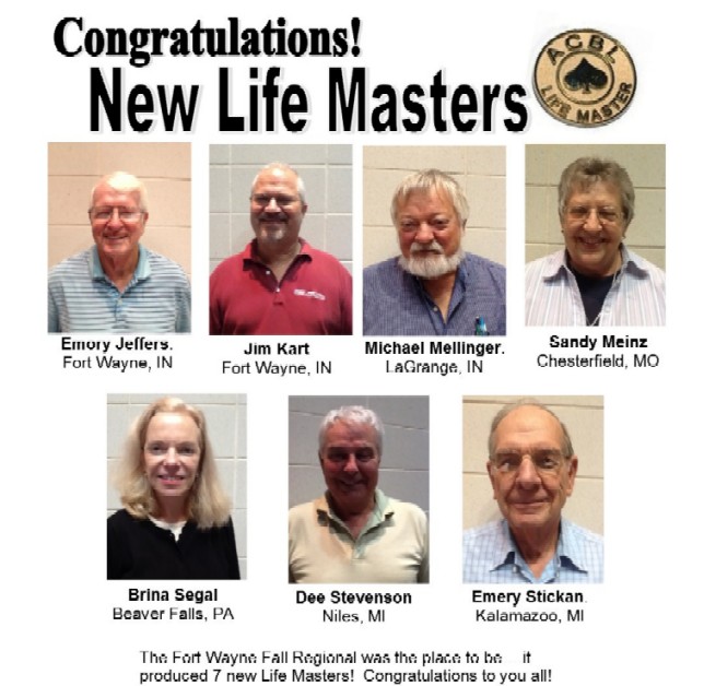 LIFE MASTERSThe list of South Bend Bridge Club Silver Life Masters continues to grow with the addition of David Irwin, who earned another well deserved 15 minutes of fame as he became a Silver Life Master.