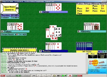 You'll find other good kibitzing in the casual games that BBO hosts throughout the day. Many experts play at tables in BBO's main bridge club and in team games with other experts. Their tables will usually have a lot of kibitzers, and all you have to do is click "Join" to watch. With the web version of BBO, you can find these tables by clicking "BBO Now" and then "Interesting tables".