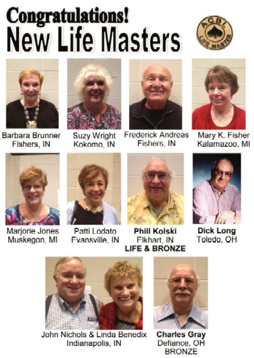 Bronze Life Masters: Michael Mellinger, La Grange; Fred Osborn, Kokomo; Elizabeth Osborn, Kokomo